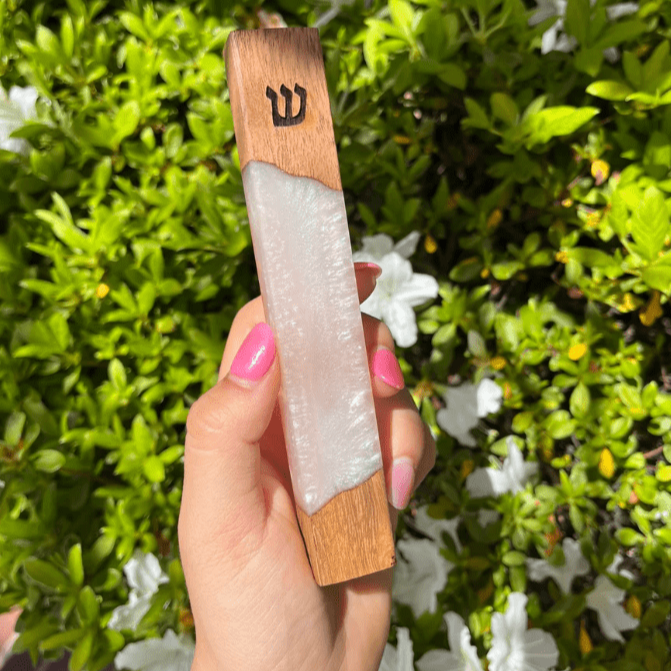 Light Blue Quartz Mezuzah with Terrazzo Shin