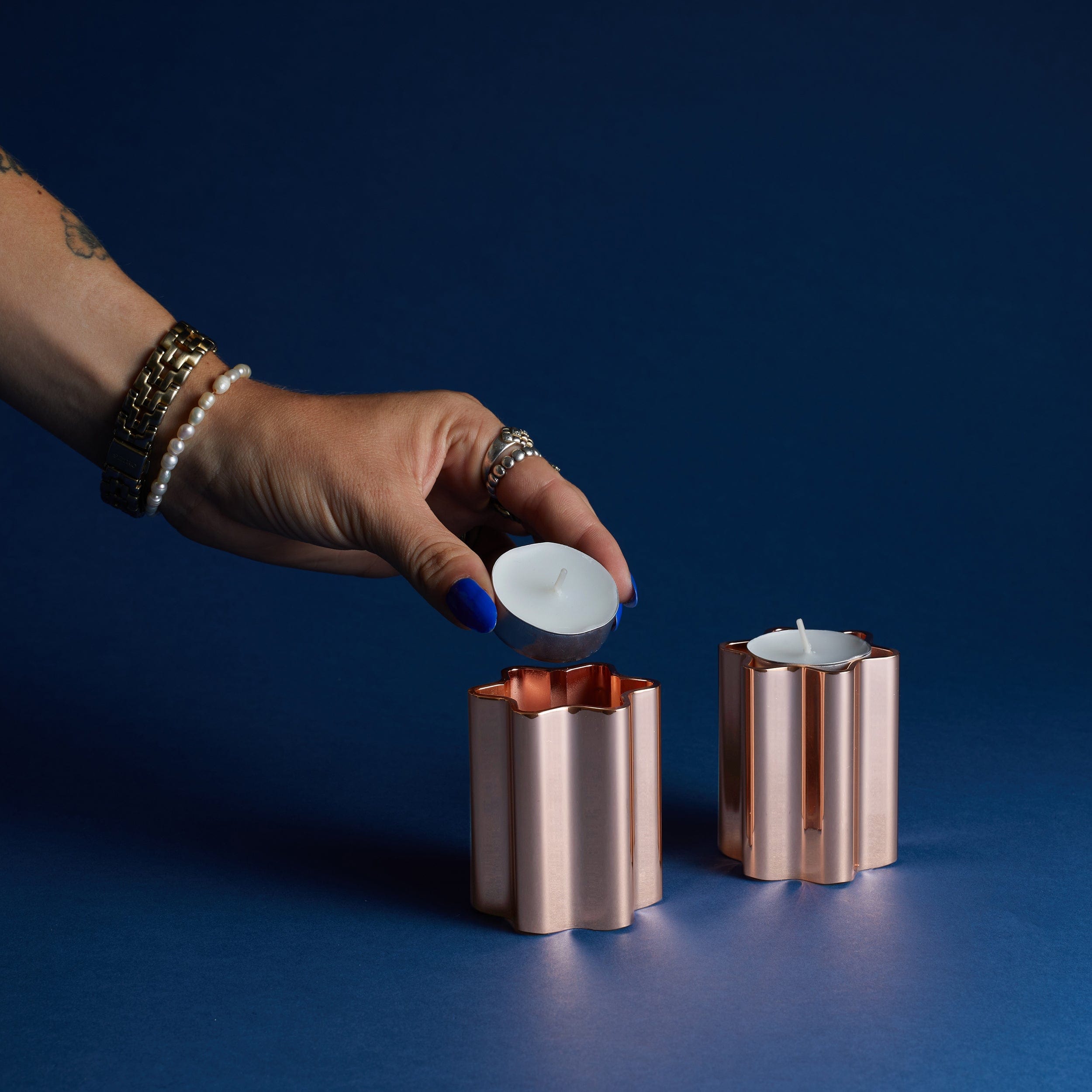 Modern Mensch Shabbat Candle Holders - Rose Gold
