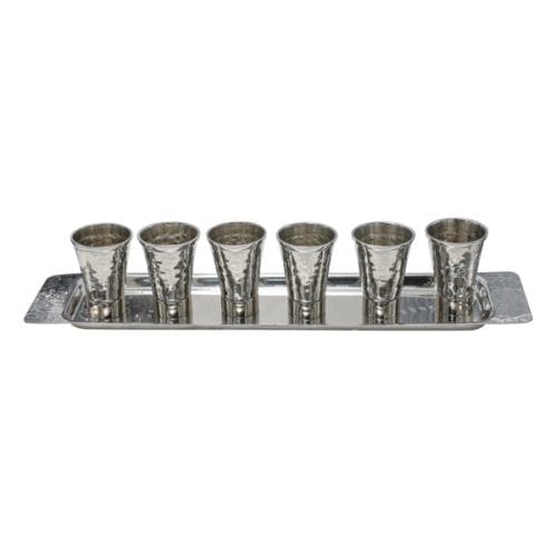6 Small Hammered Kiddush Cups + Tray by Yair Emanuel - Silver