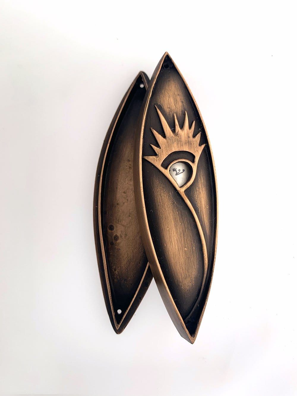 Hamsa Shin Earrings �� Pierced Bronze with Silver
