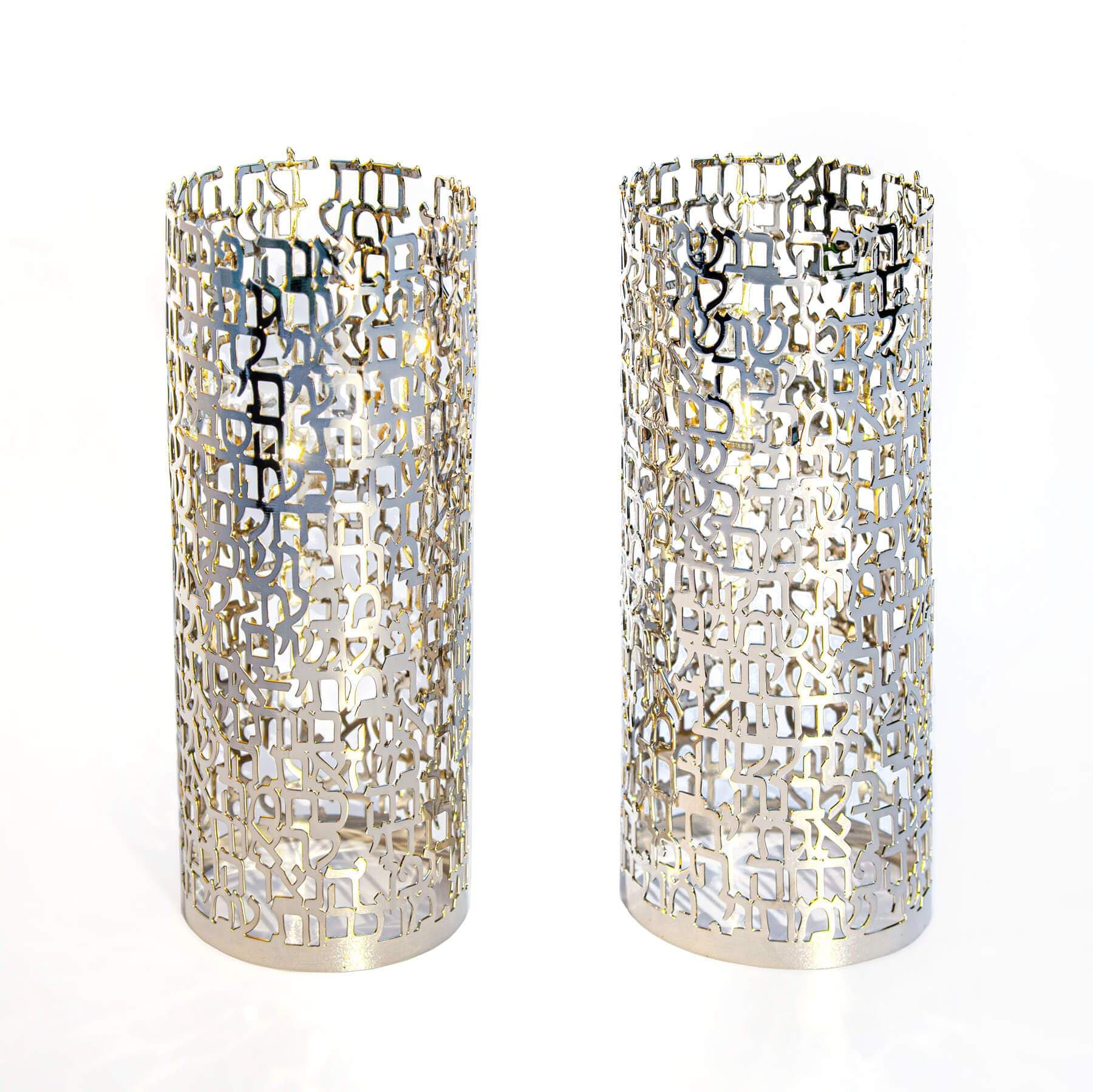 I Am My Beloved��s Ani L'dodi Song of Songs Candleholders - White Gold