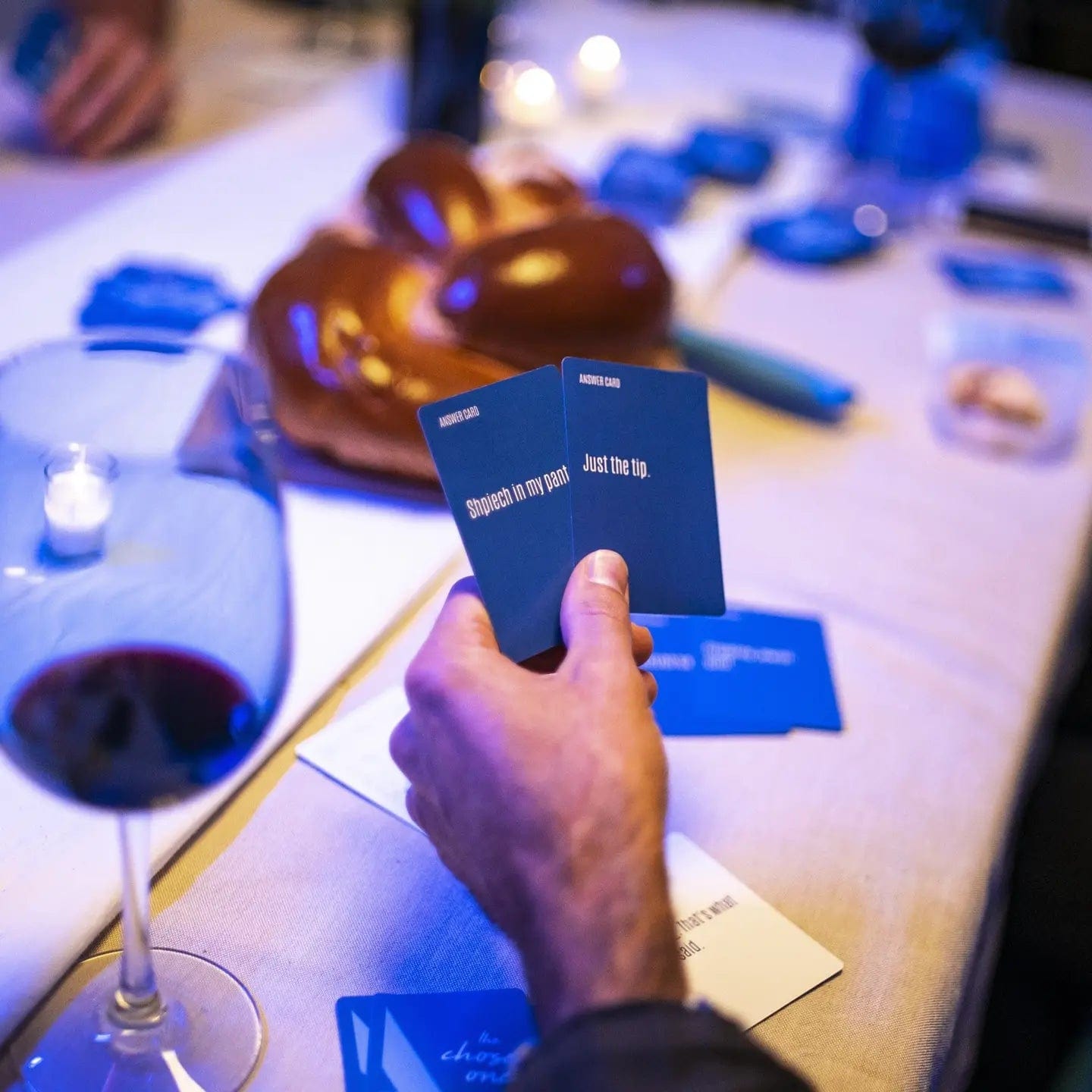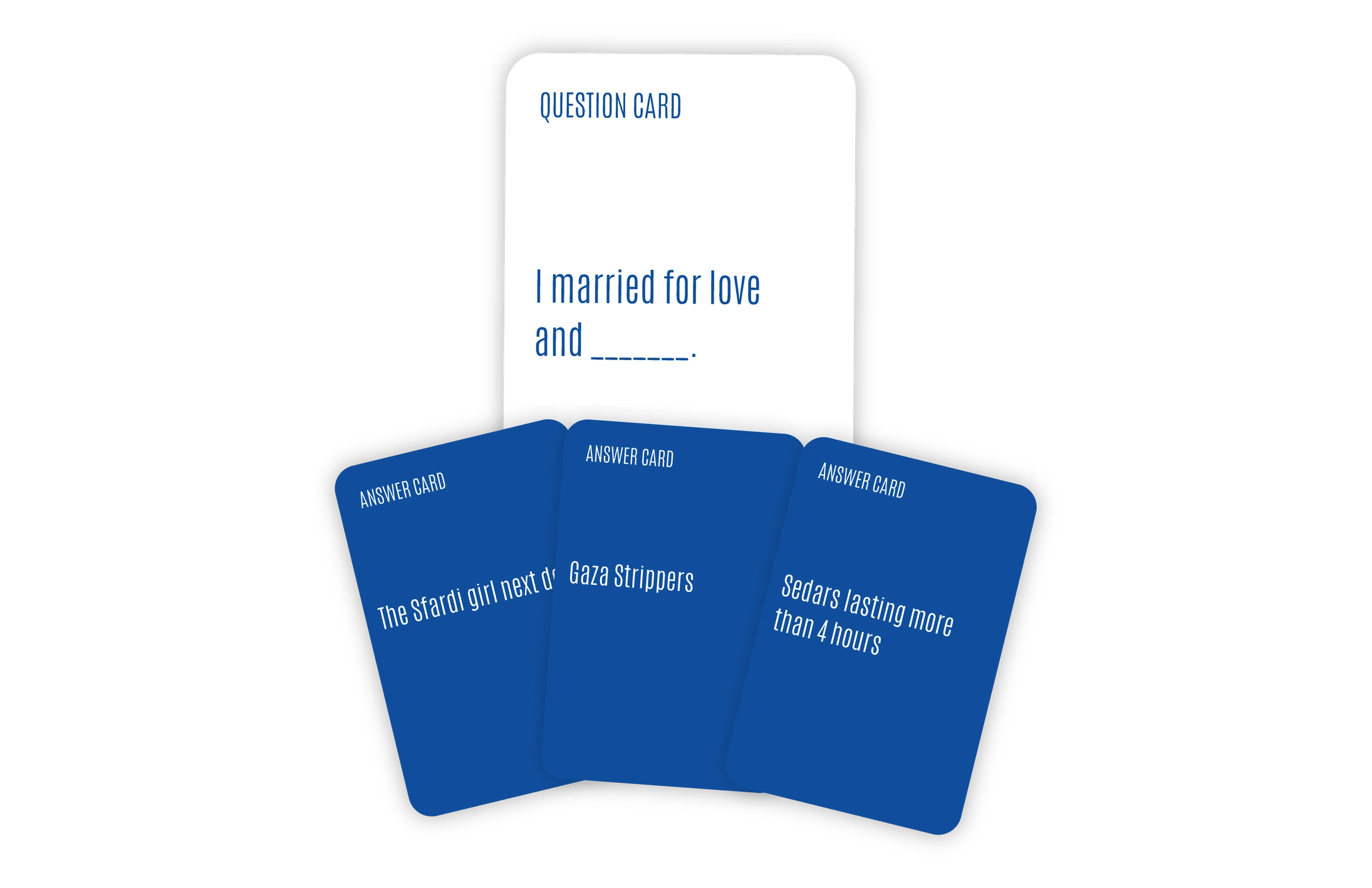 Your favorite Jew-ish game. The The Chosen One Game is simple. Each round one player picks a Question Card. The other players share their best Answer Cards. The funniest pair wins! Makes the perfect Hanukkah gift, or entertainment for Shabbat or other Jewish holiday get-togethers.