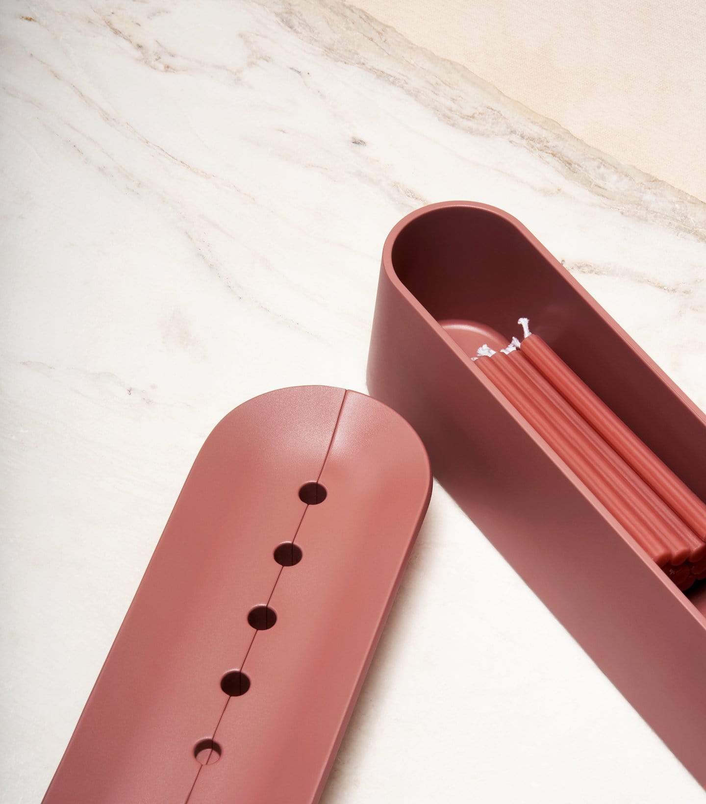 This heavy cast aluminum chanukiah brings practicality to a timeless ritual. When removed from the base the candleholder's two parts can be separated, making the chanukiah exceptionally easy to clean. Beneath the candle holder platform is a storage compartment with room for 44 candles��enough for the eight nights of Chanukah. A gently raised center spot elevates the shammash. The Block is a substantial form, weighing four pounds.