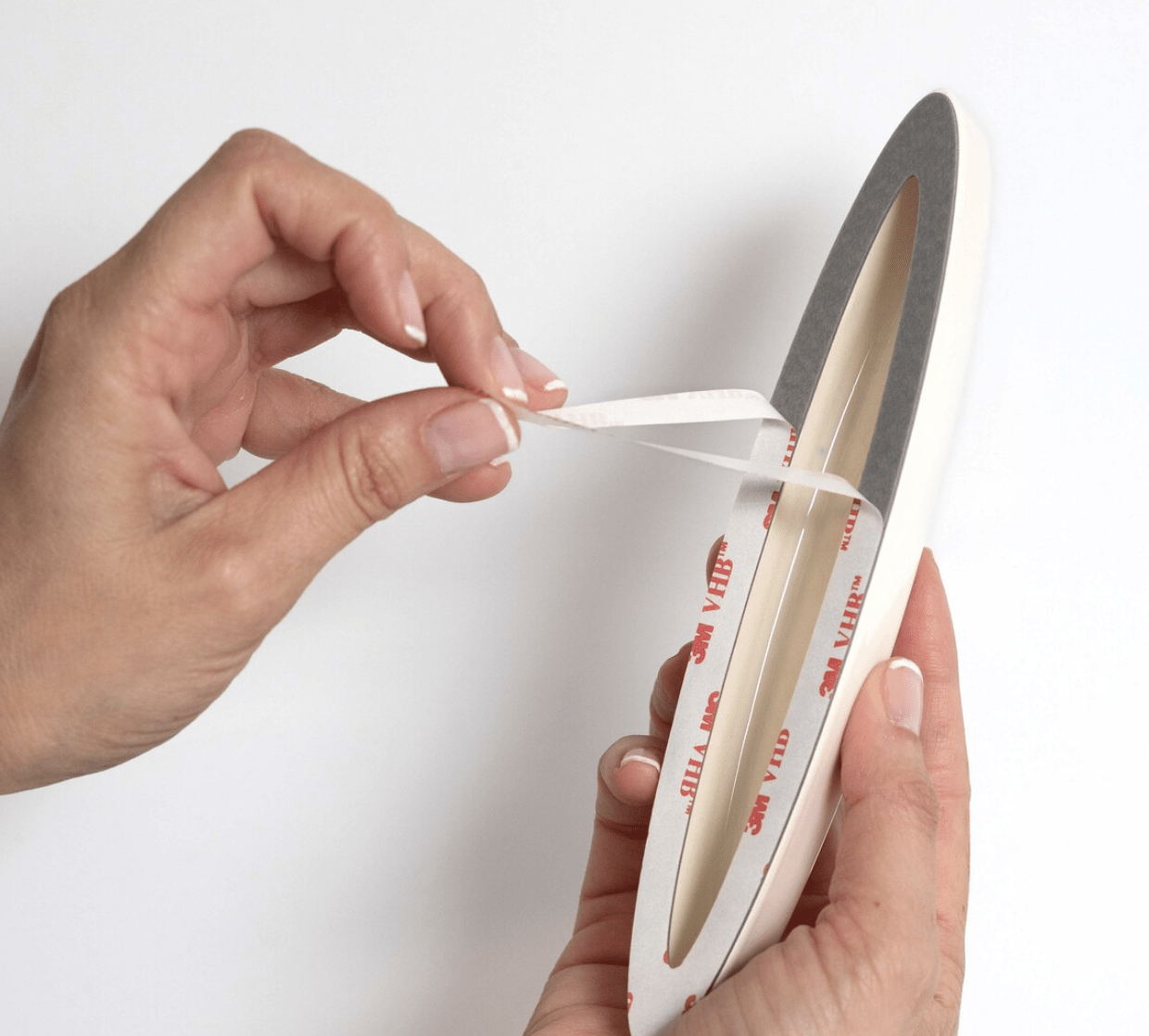 Double-sided mounting tape is included with the product for attachment to the door frame.