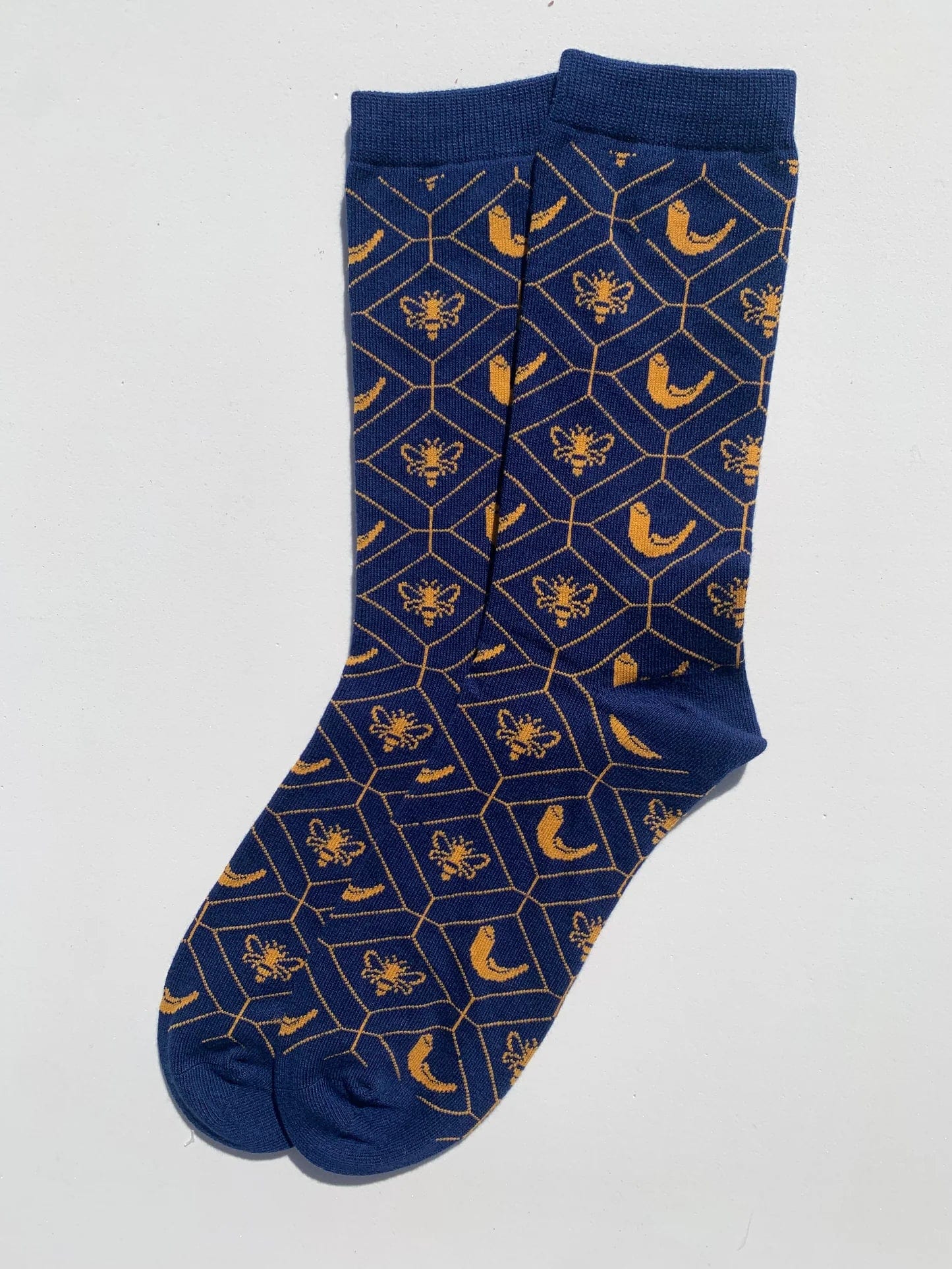 Step into the New Year with style and sweetness! Our Buzzy Rosh Hashanah Socks feature a delightful design of honeycombs, bees, and shofars, symbolizing the hope for a sweet and fruitful year ahead. Made from soft, comfortable materials in a vibrant navy blue with golden accents, these socks are perfect for celebrating the holiday with a touch of fun and tradition.