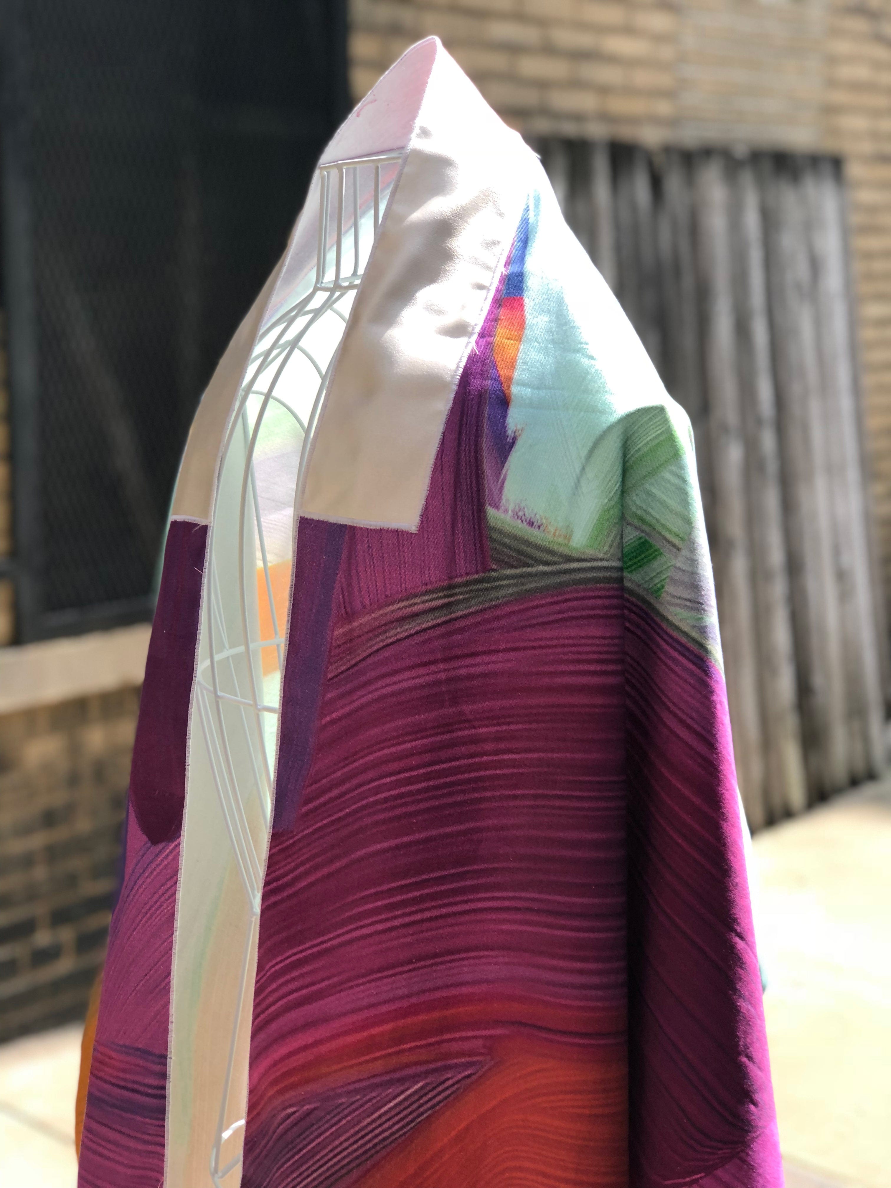 What does the voice of God sound like? No one truly knows, but when Psalm 29 is sung on Friday night, it can feel almost visible. This tallit was inspired by that experience: imagining it in layers of deep reds, purples, and sea-blues.