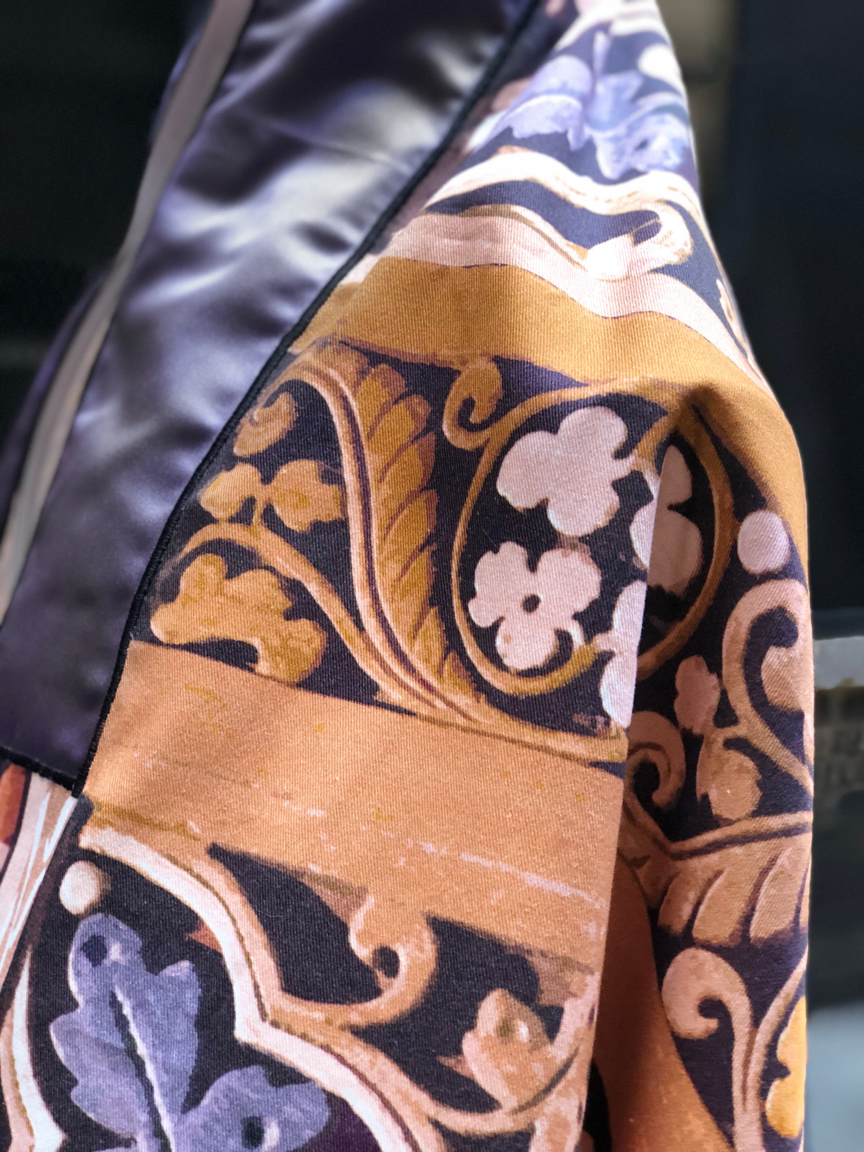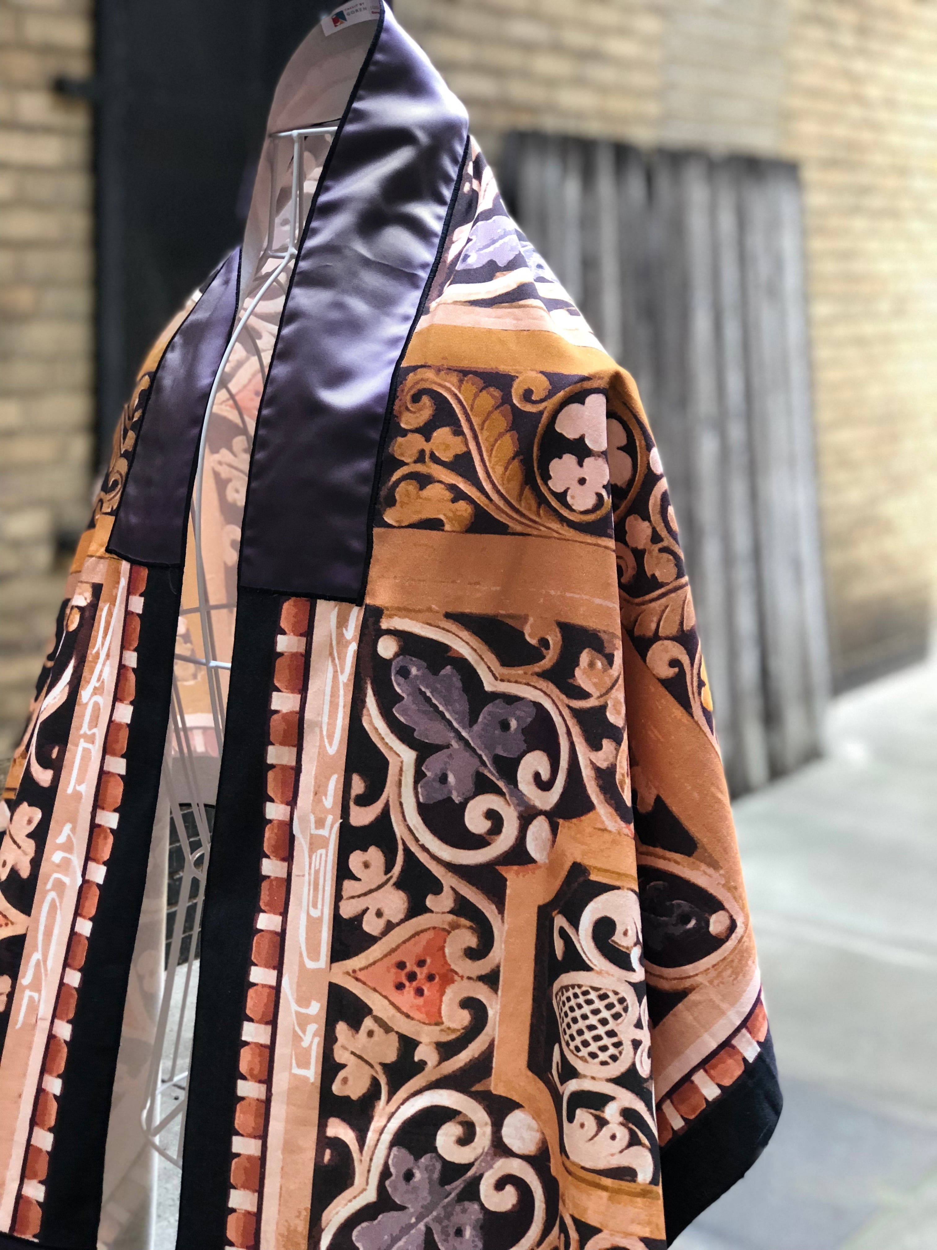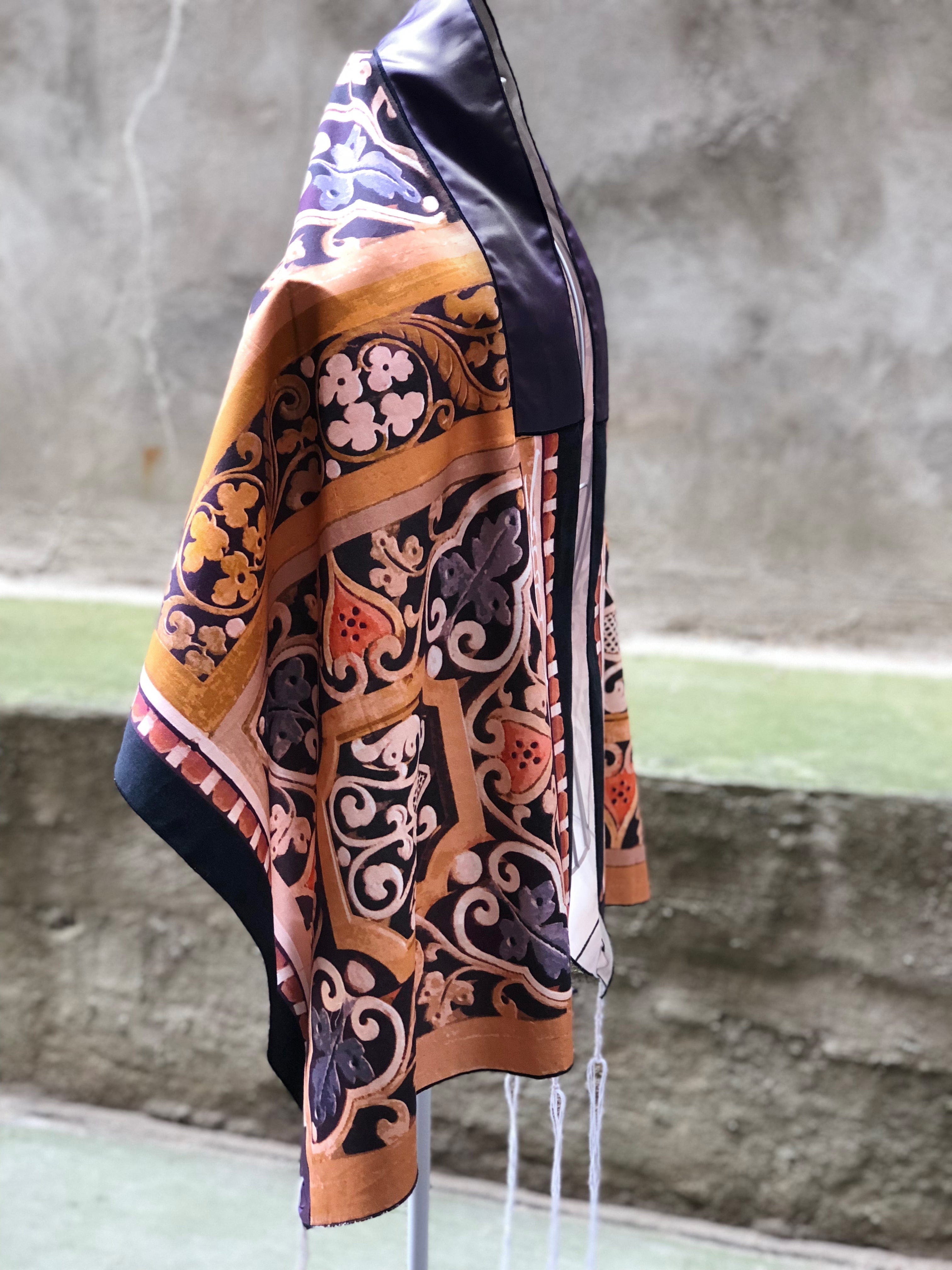 This tallit features an intricate Moorish-style tile from 1918, inspired by the sanctuary of B��nai Jeshurun on Manhattan��s Upper West Side. Along the sides flows the phrase: Da lifnei mi atah omed - ��Know before whom you stand.�� Once seen as a warning, these words can be understood as something gentler: a call to be fully present. With rich history and spiritual symbolism, this piece reminds the wearer that prayer is not only about reverence, but about love and presence.