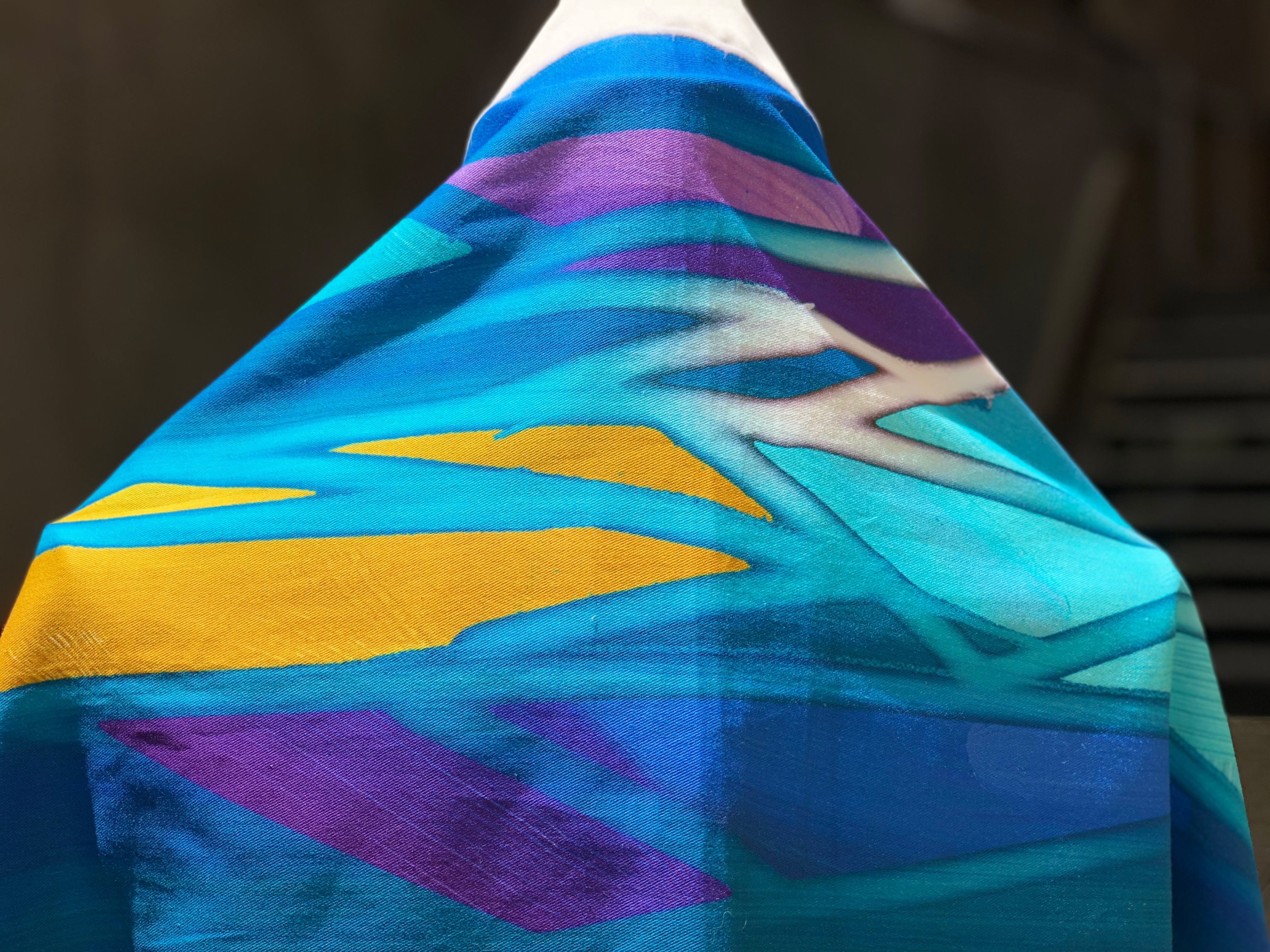 An excerpt of the poem��s text flows down both sides of the tallit: