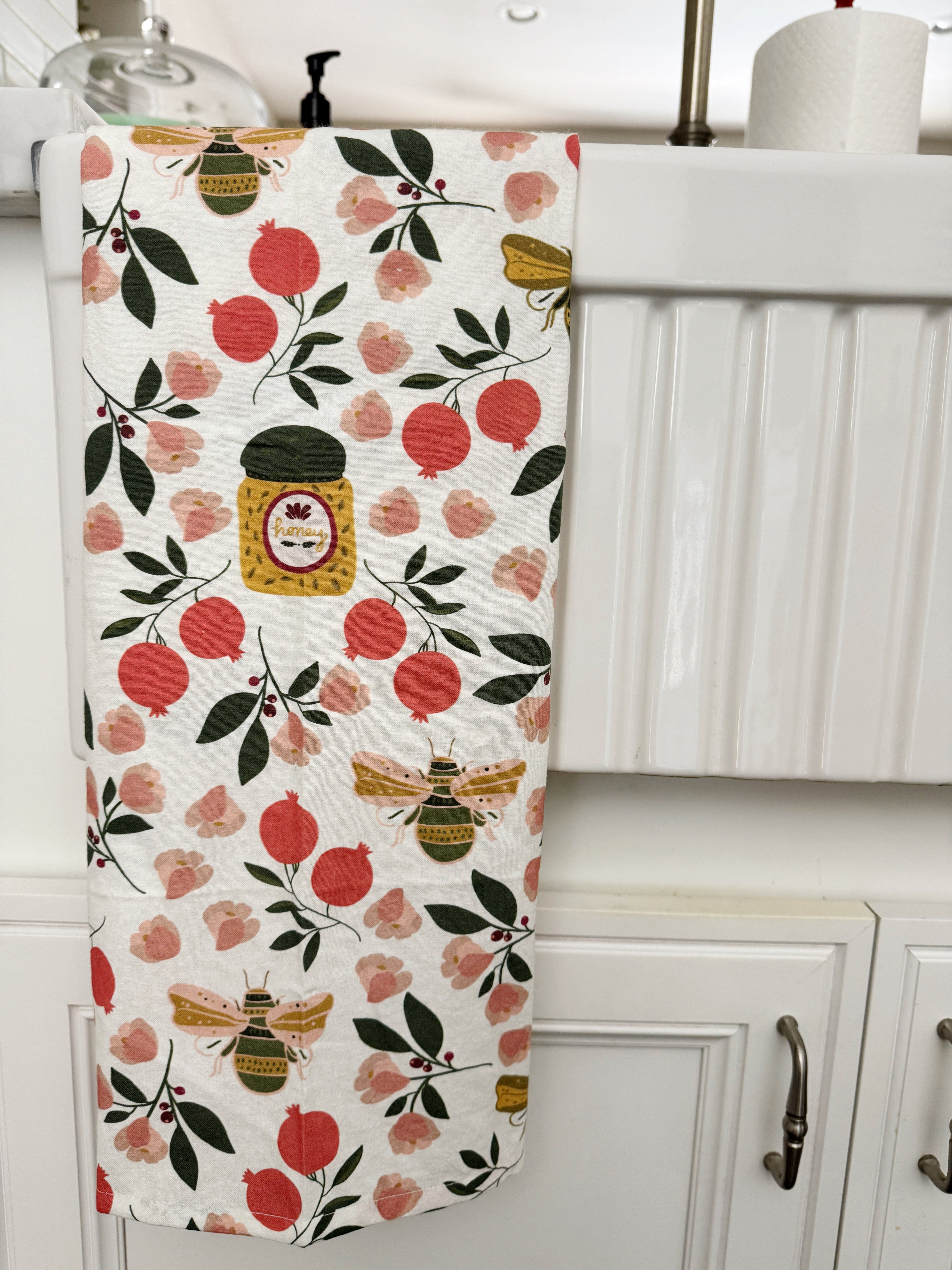 This sweet Rosh Hashanah tea towel is perfect for celebrating the New Year with love, reflection, and a little honey. Featuring a bestselling bee and floral design, it��s soft, meaningful, and made to brighten any kitchen during the holidays. Makes a great hostess gift.